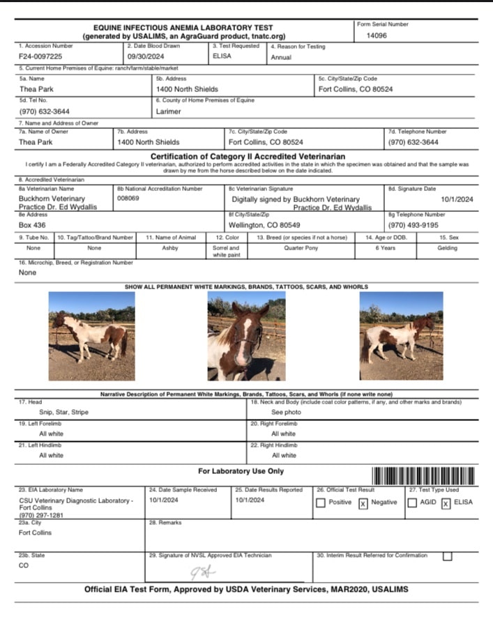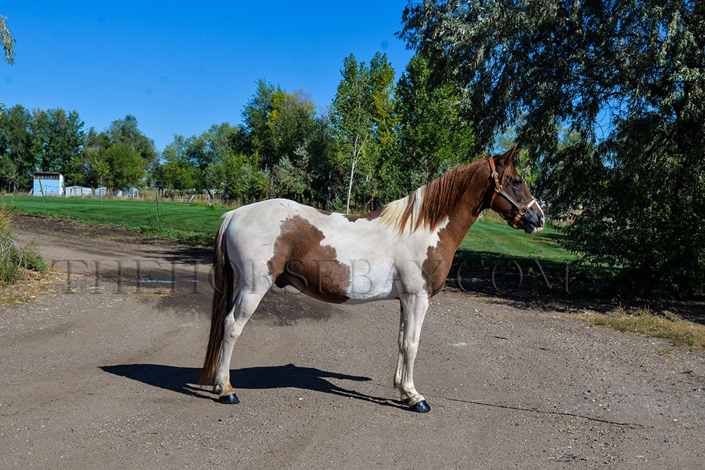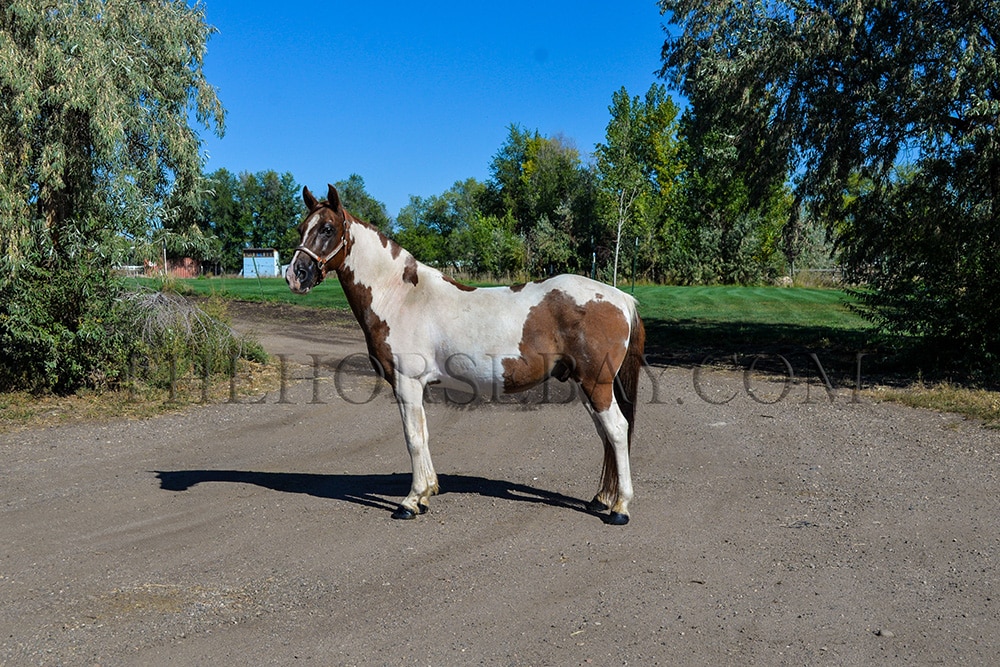 He stands for the vet and farrier, self-loads and backs out, gets along with all other horses in the pasture (he is at the bottom of the pecking order), and has great ground manners. (He also loves baths and treats… lol!)