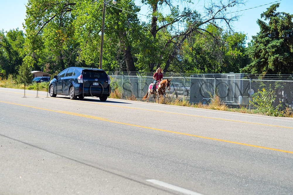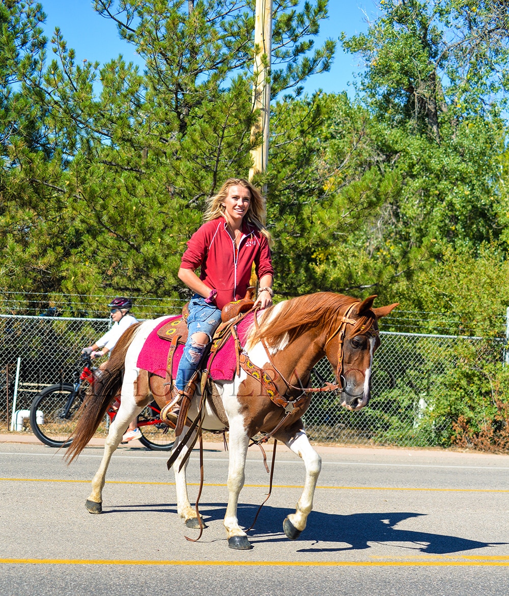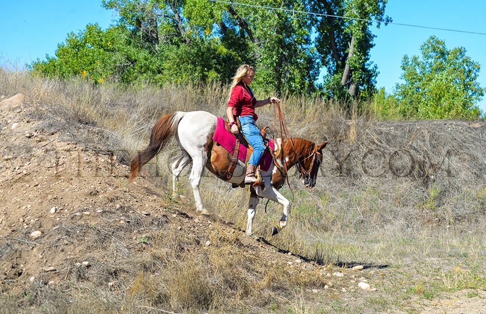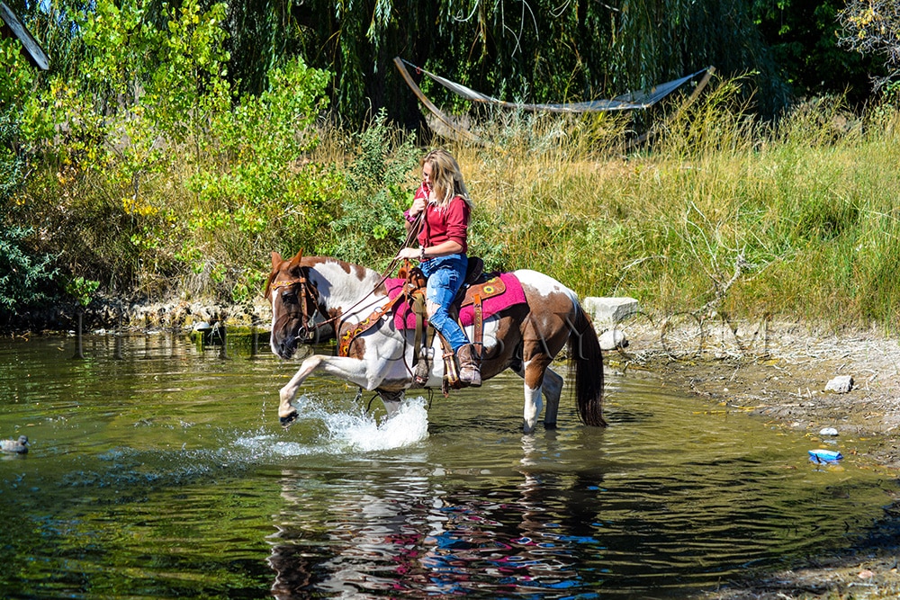 Ashby’s favorite activity is trail riding. He is always happy on the trails, whether in the mountains or in town. He is used to all kinds of commotion and scary objects! He’s fine with crowds, music, traffic, dogs, kids running around, strollers, bikes, trains, etc. We also take him to the drive-thru to get coffee on the weekends!