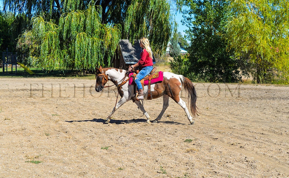 Ashby has done a little bit of everything, including trail riding and packing kids around! This horse is THE definition of a babysitter! He has cared for young kids learning to ride in the arena and out on the trail!! He is sweet, steady, and trustworthy. He did a couple of years of 4-H, so he knows Western patterns, lightly knows the gymkhana patterns, excels in the Western pleasure ring, and knows how to set up and trot off for showmanship. He also has the start of flying lead changes and a finished neck rein!