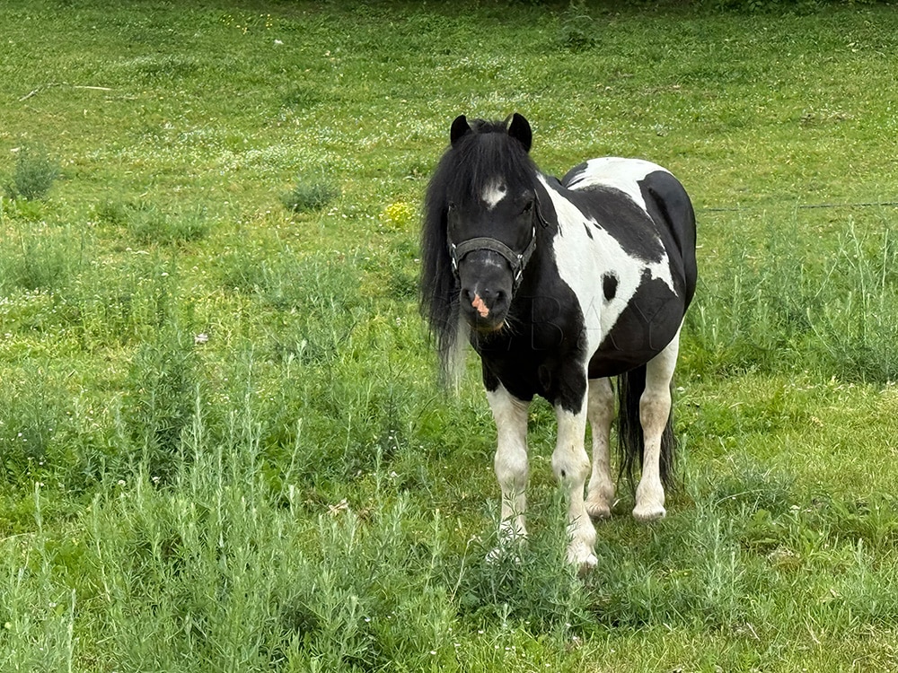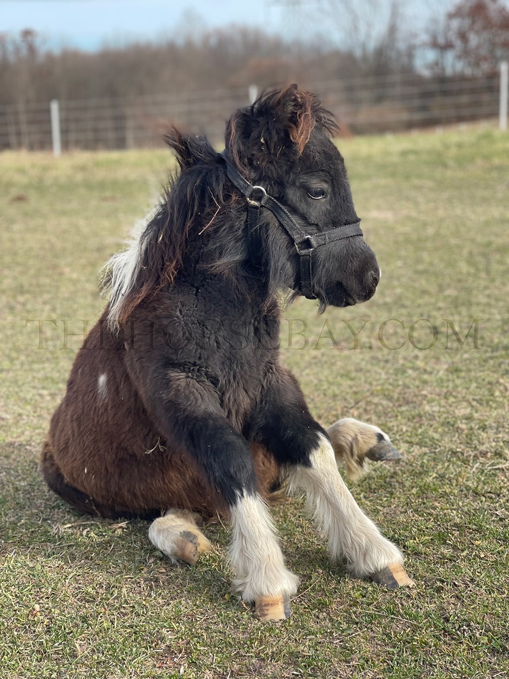 We own her mom and know her dad both parents are babysitter ponies that ride and drive and they have super quiet laid-back temperaments. And Buttons is taking right after both parent’s dispositions. She should average anywhere from 34″-38″ tall when full grown. Her Mom is about 34″ and dads about 38″ tall. Buttons also gets along out in a herd she is in with other ponies, and she is low of the pecking order.