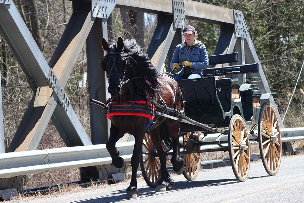 For driving, she stands good for hitching, stop signs, and getting on and off the cart. She doesn’t mind traffic, flags, things by the road, or the neighbor’s dogs barking and running out to her. She’s quite used to having a little doggie buddy follow her out on the trails. She’s quite used to the puppy antics, as Tramp will try to get her to play with him by running up to her and jumping around her legs, trying to get her to play chase. She gives him a look like he’s nuts and ignores him no matter how hard he tries to get her to play. But she still likes him enough to give him rides.