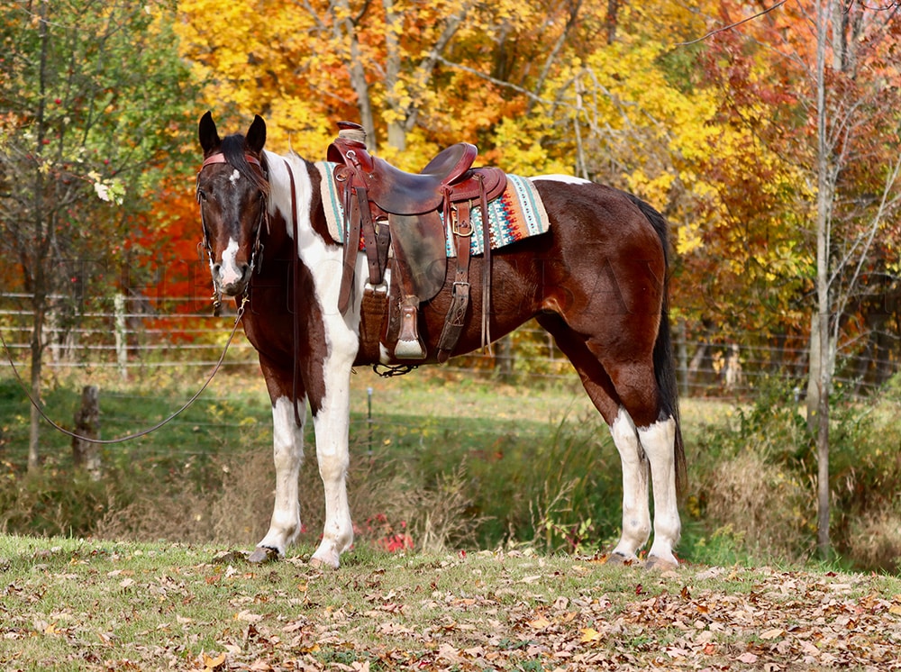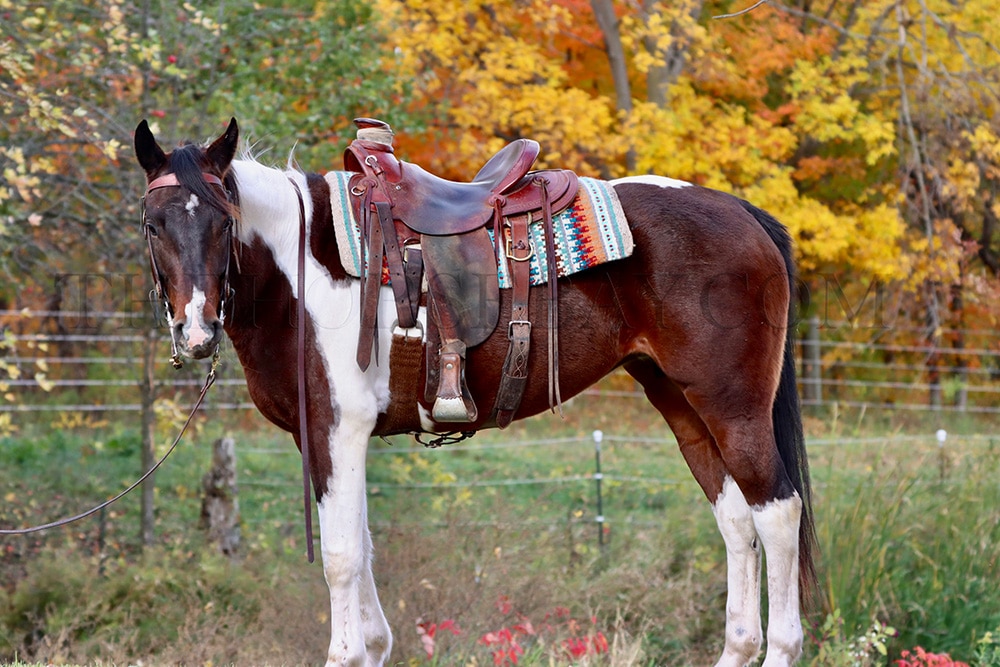 STOP and check her out!!! Cowgirl is a 4-year-old Paint mare with an old soul. She is very broke, more so than many horses twice her age. She ranches, is a trail machine, and even knows some tricks. She stands at 14.3 hands tall but may grow another inch or two yet. So, check out her video and read her full description —you won’t want to miss out on her; she is a real Cowgirl.