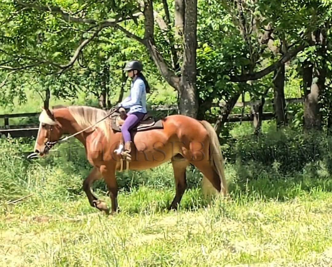 Since she is a rare silver bay and the gene is reported to be dominant in bays (silent in chestnuts like her sire), she offers a chance to potentially be a valuable broodmare as well and pass on her unique color to her babies, making her an asset to any breeding program or small backyard operation as well.