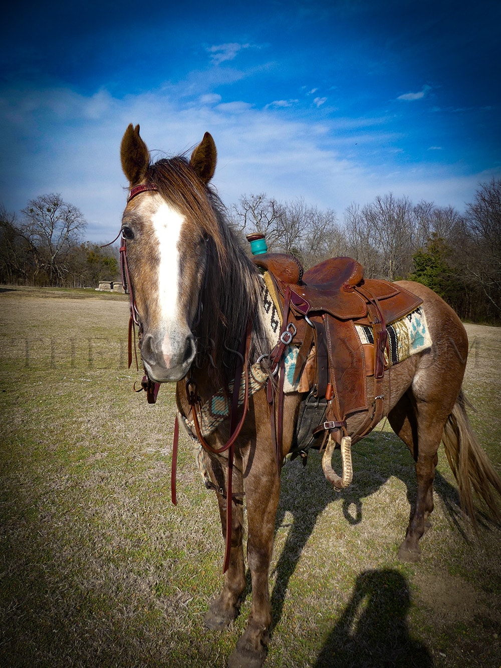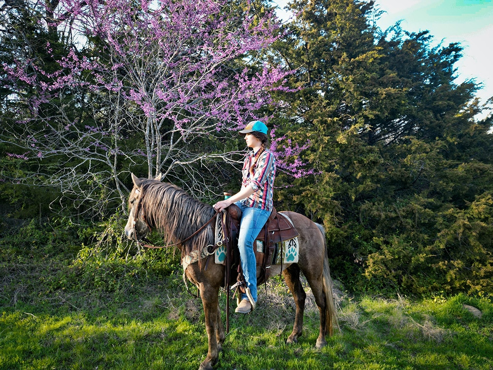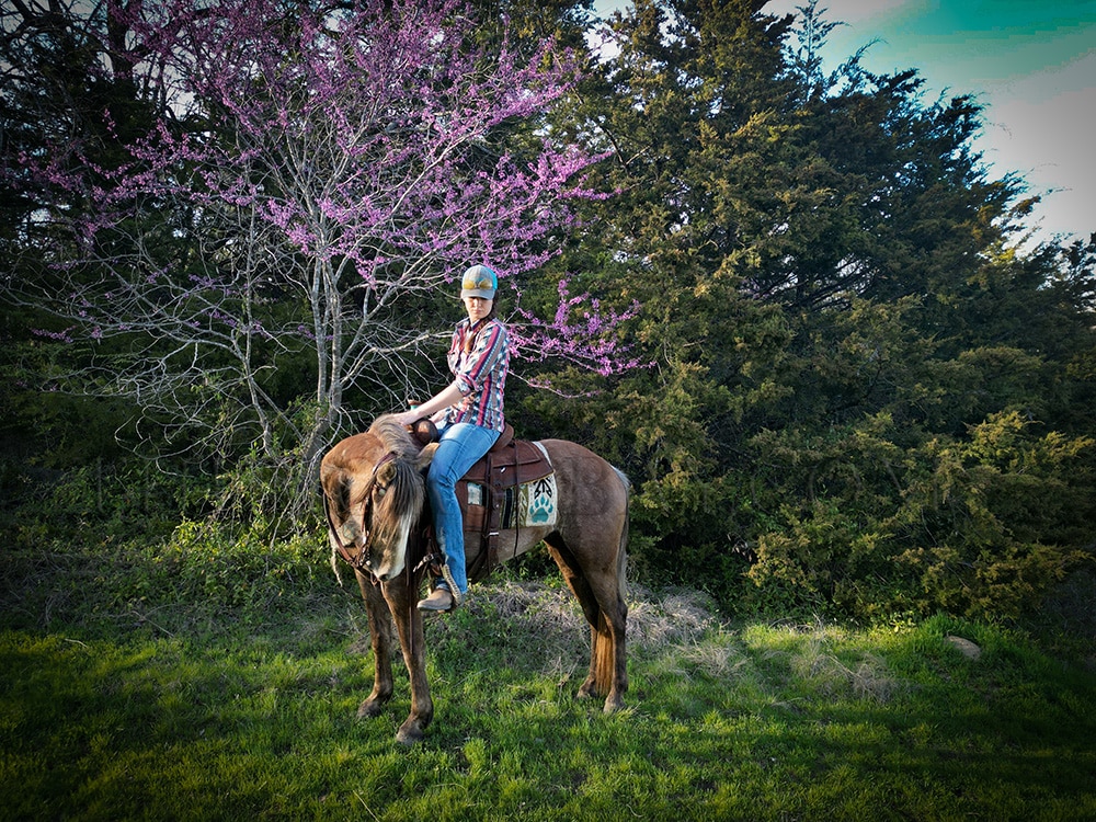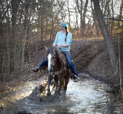 Faith can be ridden bareback or with a saddle and is unfazed by dogs, cats, other horses, cattle, traffic, trains, ATVs, lawnmowers, and four-wheelers. She loads and unloads from a trailer with ease, and she’s a breeze to brush, bathe, saddle, unsaddle, and catch—she’ll even meet you at the gate. She stands quietly for the farrier and has no vices or bad habits.