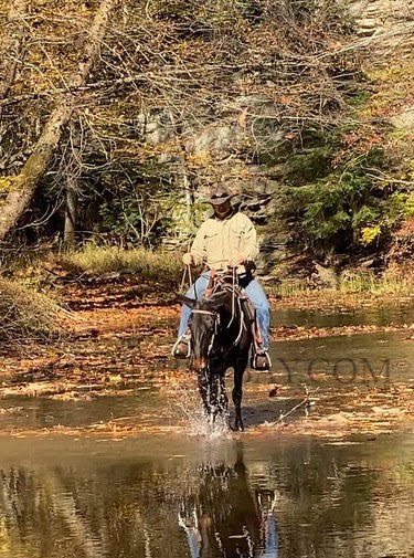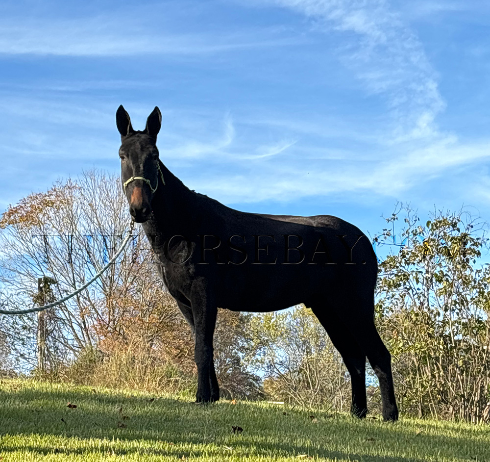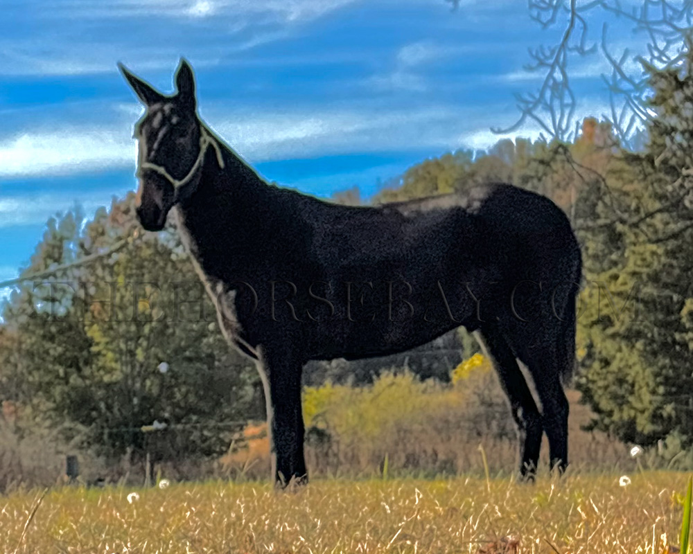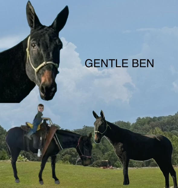 Ben is a 4-year-old gaited mule. He is 14.3 hands. He is intelligent, loving, and has a strong desire to please. He truly enjoys being around people. Ben is so many things. Most notably, he is caring, affectionate, kind, dependable, respectful, safe, and gentle. Ben is a mule the entire family can enjoy. He’s the mule that everyone wants to ride, no surprises. Ben is a rare find; it would be hard to find another one like him. He is an all-around mule. That feeling of safety and security in having a dependable mule is usually unattainable, but with Ben, it is if you’re looking for the perfect gated mule. He is always quiet and trustworthy when riding out alone or with a group of horses in the front, middle, or back of the pack. He doesn’t get excited or anxious. He could care less when other horses or mules take off ahead of him. He has been written everywhere! I honestly don’t believe there’s anything he hasn’t encountered. Ben is totally relaxed with you in the saddle, and he rides with a spur, sometimes needed because he’s so laid back. Please don’t take that the wrong way.; Where you’d like him to ride with or without a spur. He is surefooted on trail and honest; he will walk through ditches, cross creeks, up mountains across logs and bridges, and go in deep or shallow water. The children can crawl all over Ben, and he doesn’t mind. He loves the attention. One of my favorite things about him is his gentle, safe nature and sweet, loving, in-your-pocket personality. Don’t worry about having trouble mounting.