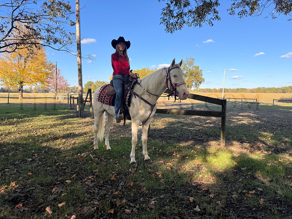Casper the Fox Trotting Horse is a coming six-year-old, registered Missouri Fox Trotter, raised on our breeding farm in Freeburg, IL, since birth. Our family has been breeding and raising Missouri Fox Trotters for over 40 years, with over 50 head of registered Missouri Fox Trotters on hand. We still have Casper’s mother in our herd, and his sire is a four-year-old World Champion Stallion named “Top This.” As you can see in our videos, Casper is a well-trained, well-experienced, fun little horse and does a lot of different things. We have trail ridden him extensively with several riders, and he also has extensive experience in the buggy. If you are looking for a cool-looking little horse, check out Casper. He stands 14.2 hands and is easy to handle, catch, and ride. Casper is an all-around fun horse.