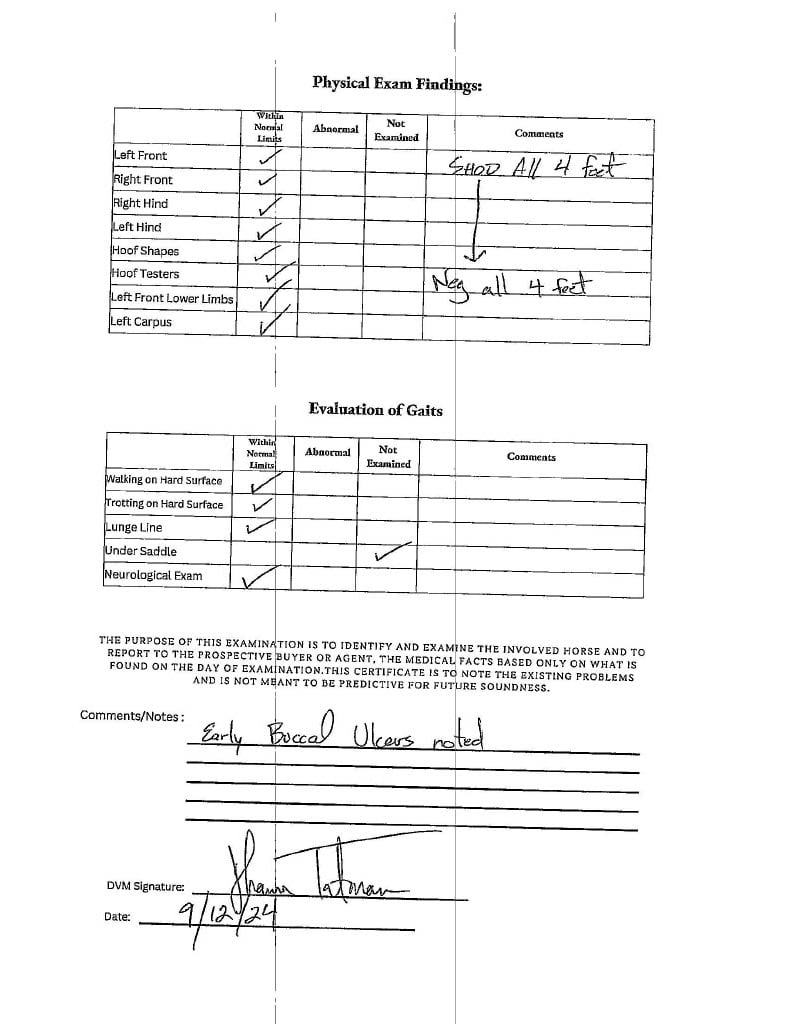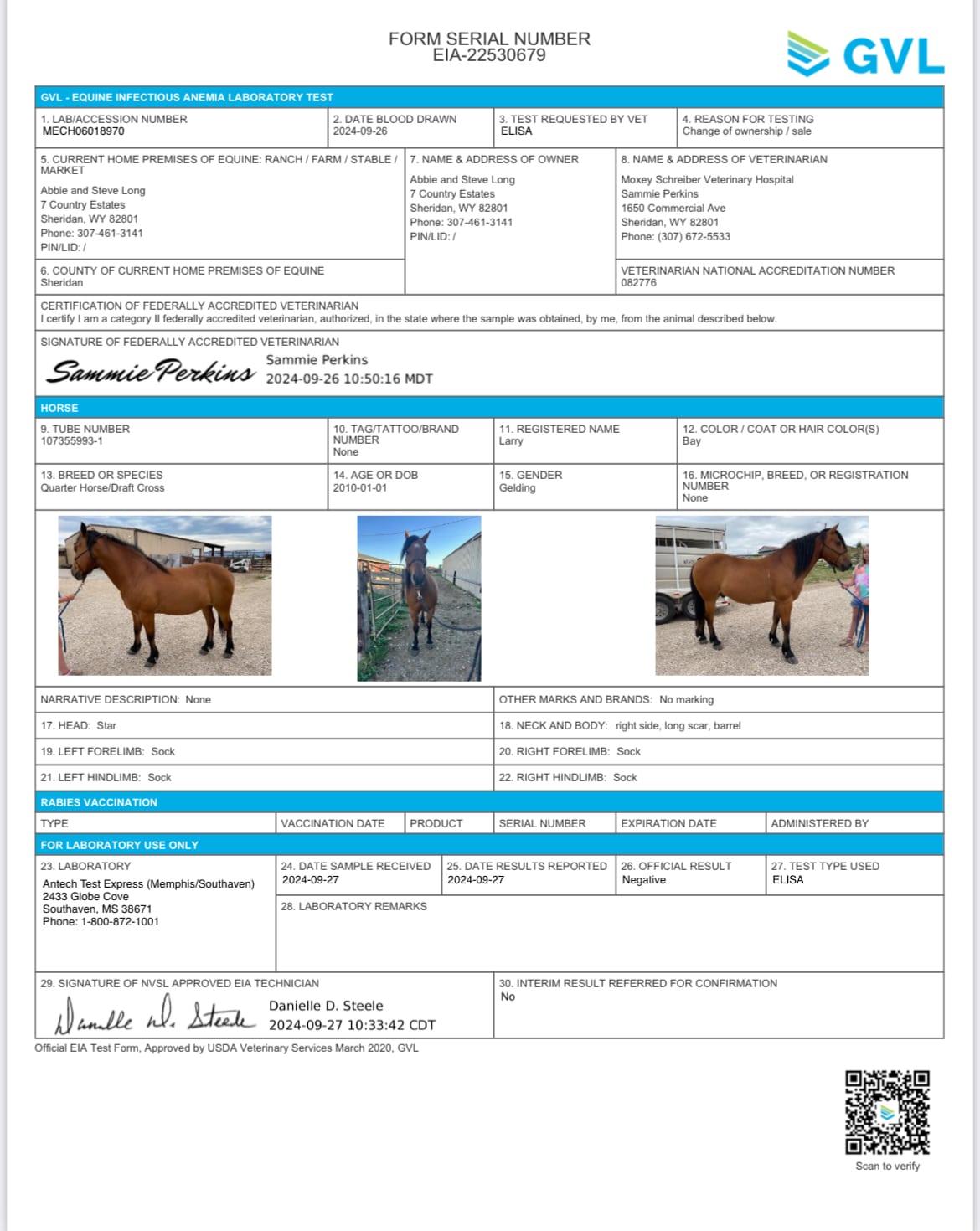 Larry stands for the farrier, easily loads and hauls, loves baths, and stands quietly to be clipped. He is excellent in new surroundings and will stand tied patiently all day long. He is current on all vetting, including vaccinations, coggins, and farrier work. He is currently shod all around due to being actively ridden on all sorts of terrain.
