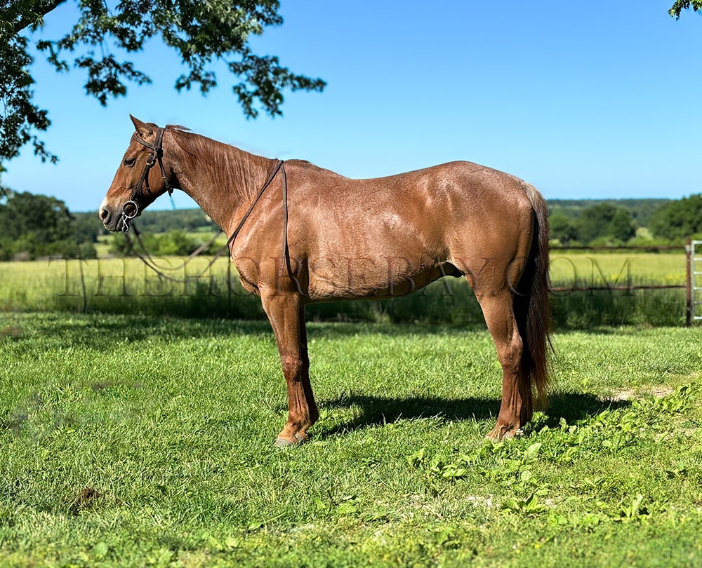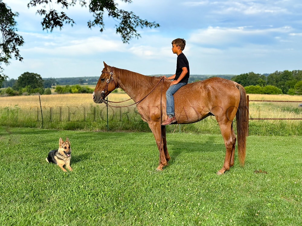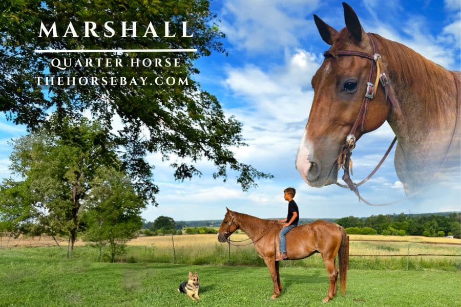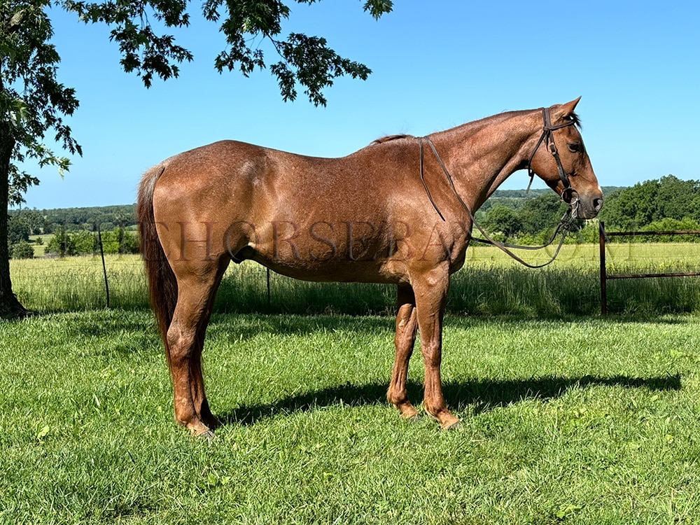 Marshall is a 15-year-old red roan quarter horse gelding standing 14.3. Marshall is a handy broke and rides around nicely. He has been trail-ridden all over, gathered cattle, and checked fences. He has a nice one-hand neck rein and a big stop. He also has a nice slow trot and an awesome short lope. He lopes big and small circles with the correct leads he backs up and side passes nicely. Marshall lunges both ways. Also, he is a seasonal trail horse, or you can put him to work. This fancy gelding is a pleasure to ride. Marshall is always easy to catch and stands great for the farrier.