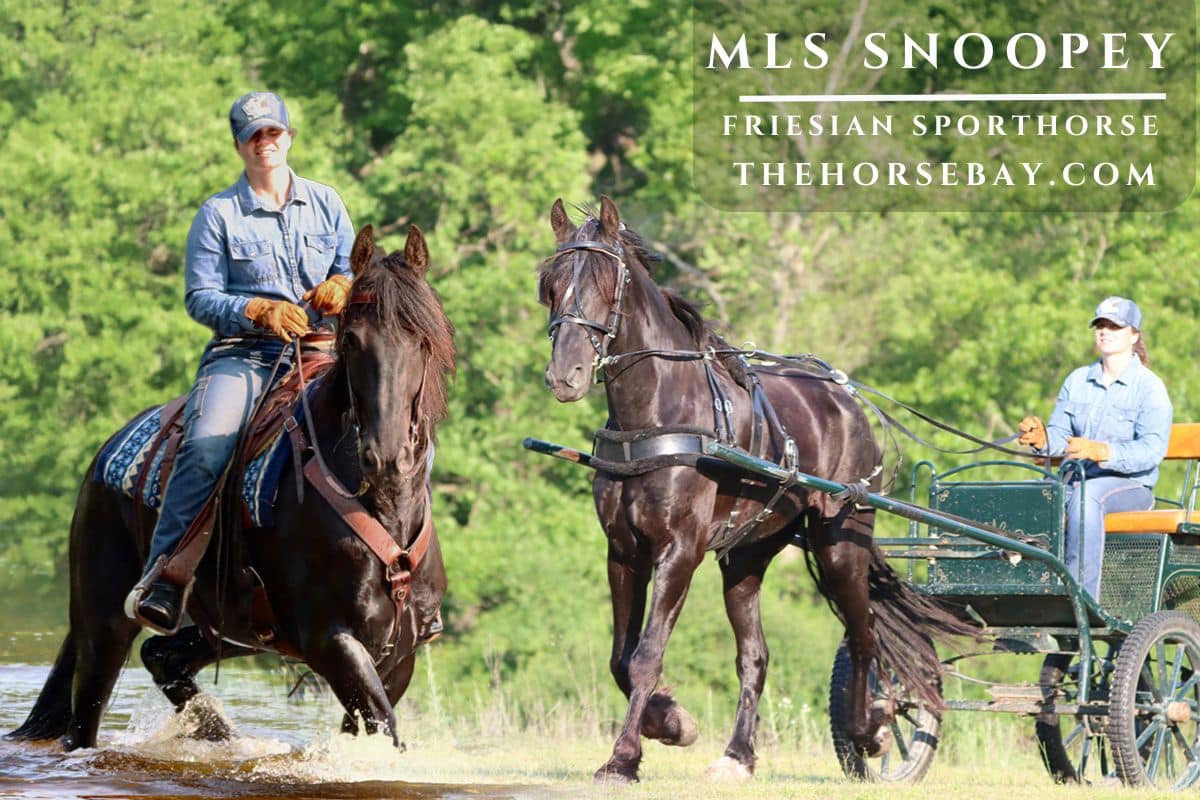 Introducing Snoopy he is a 5 yr old, registered Friesian Sport Horse standing at 16.1 hands tall. He RIDES & DRIVES. Will cross bridges big and small. Any kind of water creeks, rivers, lakes, ponds, etc.