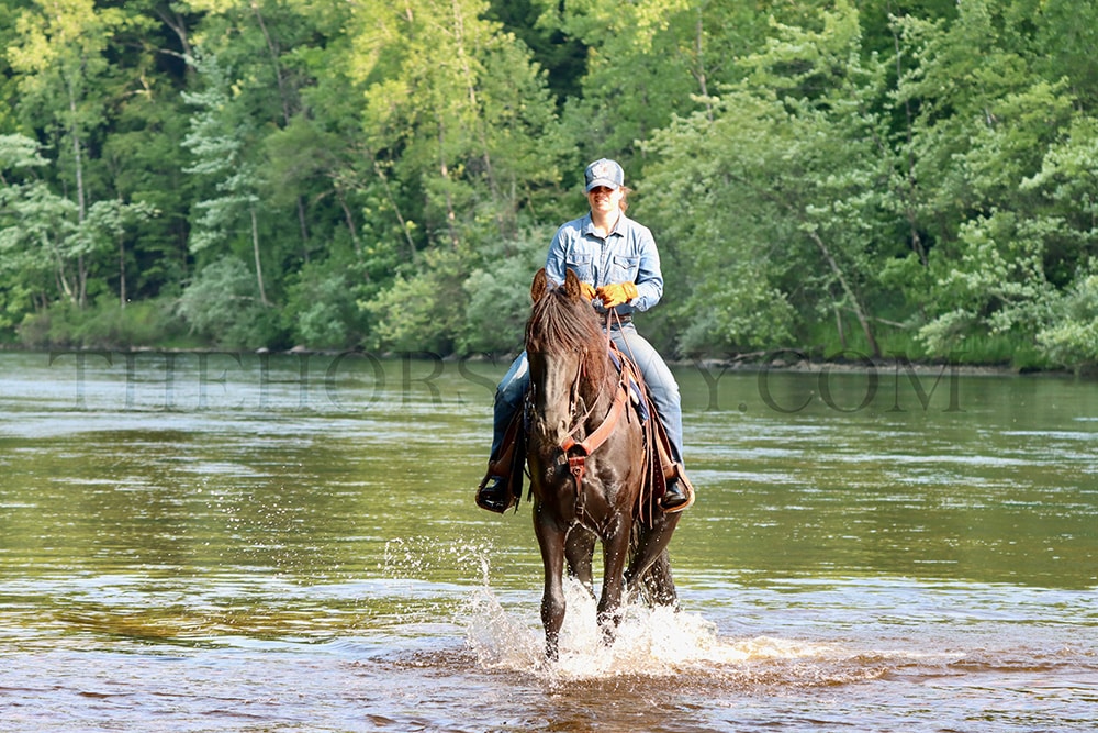 Rides out alone or will separate on the trail. He can go front, back, or middle it doesn’t matter he’s an easy going guy doesn’t care where you put him. He’s also done some ranch work been used for roping calves. He’s also ponied as well.