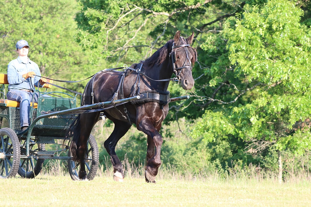 Under harness he stands good and doesn’t walk off until you ask. Stands still at the stop signs and lights. He’s easy on the lines. Would make an excellent driving horse for someone that wants to learn with him as he’s very safe in the carriage and more WHOA than go under harness. I could easily see him eventually being used as a lesson horse for someone to learn on he’s very forgiving.