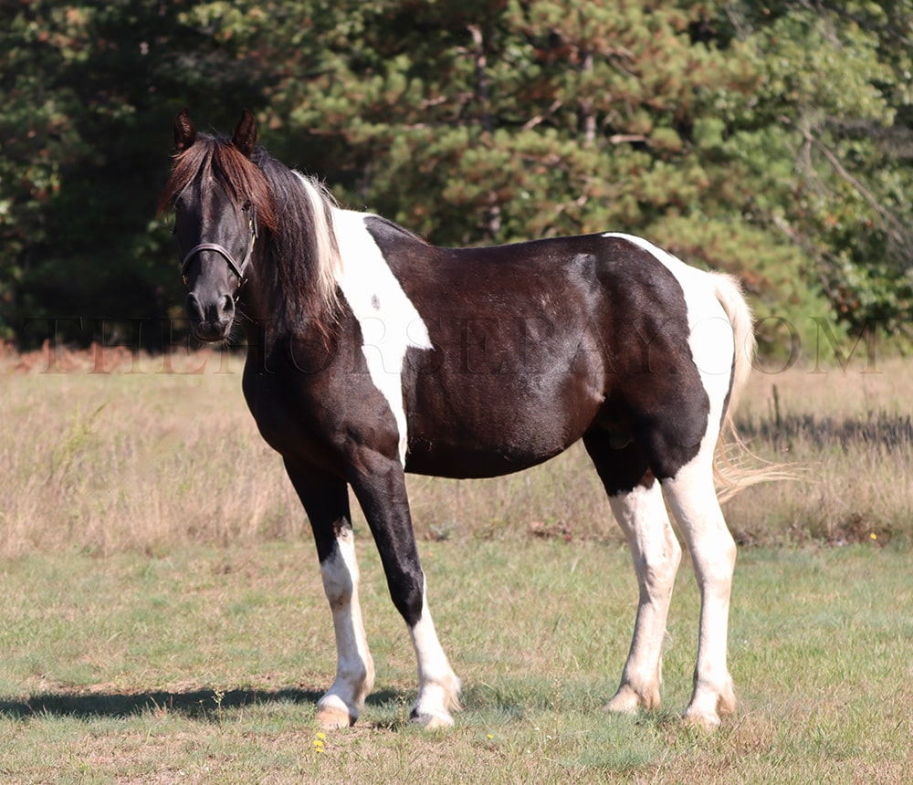 And not only that you get a surprise in June 2026 that is when she is due to have a nice Gypsy foal. She has been ultrasounded in foal. The sire is a registered 15 hand tall Gypsy and very handsome gray color. So, the baby could be a beautiful dapple gray or come out black and white like Pepsi. Either way it’ll be a very nice cross and eligible for Gypsy sport horse papers. Pepsi is a good mom has had a few babies already and each baby is nice and stocky with feathers. And she takes great care of them.
