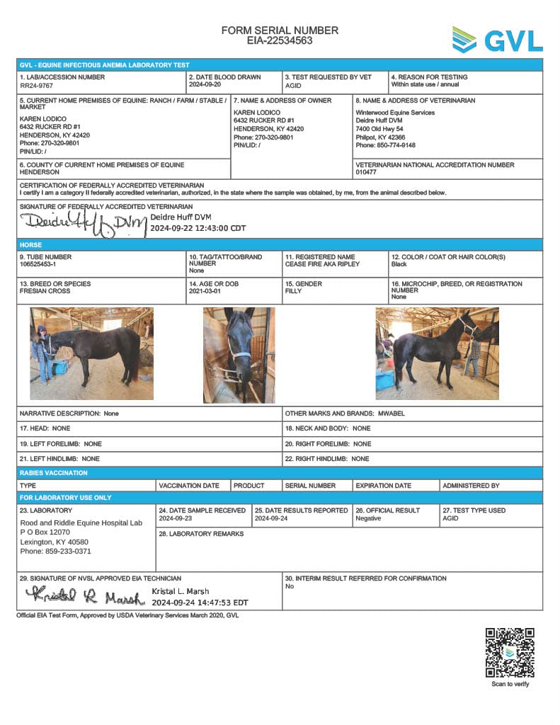 FHH registered 2021 All black filly. By Friesian stallion Ynze K and out of blue roan mare Willias Blue Baby. Ripley, as she is known around the barn, is a very sweet affectionate filly. Happy to leave her friends, she will come right up to you in the field and is quiet and well behaved alone in the barn. She has lovely ground manners and does everything a future show horse should. Stands Tied quietly, Loads, good with fly spray and water, good for the farrier etc. She has been allowed to mature and hasn’t been pushed young. Has four months of professional training giving her a solid base to work with. She has lovely movement and a good work ethic. Going walk, trot, canter and started on side passing. I would still consider her as green, but she hasn’t offered to do anything bad. Has been ridden out with other horses on the trail including water crossings. She has done obstacles and is very brave. This is a lovely, young filly with a bright future ahead of her! Fillies of this quality don’t come up often. She is only offered for sale due to the fact her owner is older and needing a made gaited horse. Owner has kept her current on everything, she just got a dental this spring. Vax, coggins, deworming, trims all up to date.