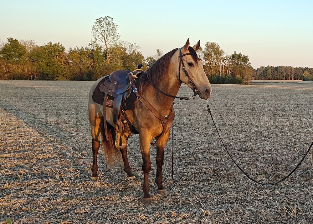 He’ll ride out alone just as calmly as he rides back to the herd or barn, and there’s nothing this good boy won’t do — from working cows to leading parades. Whether it’s babies in the saddle or your great-grandson along for the ride, he’s the kind you can trust with everyone in between.