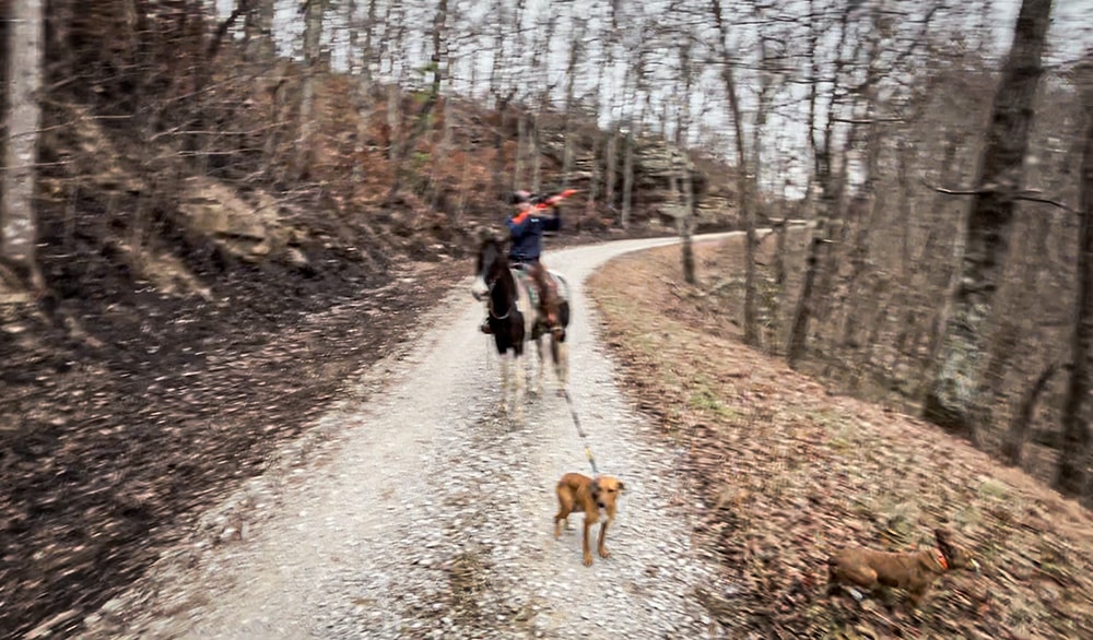 Will break the wild dogs that’re running between his legs and under him, getting tangled up, never gets excited!