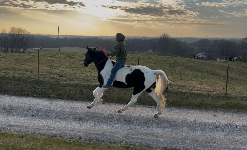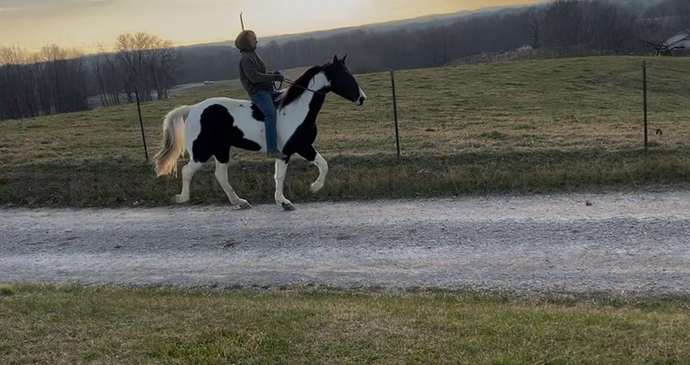 He has an amazing running walk with lots of reach and a big head shake on a keg shoe, will step on up and hit a great little saddle gait, and the. Transition into a style rack! Or you can collect him up, and he will canter in the palm of your hand, super good, slow lope!