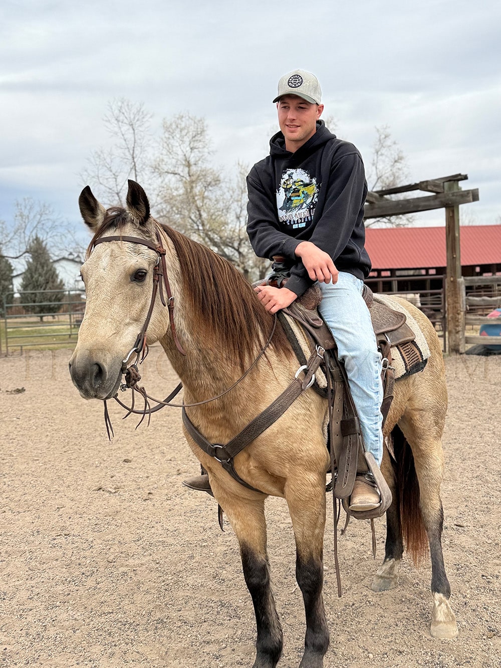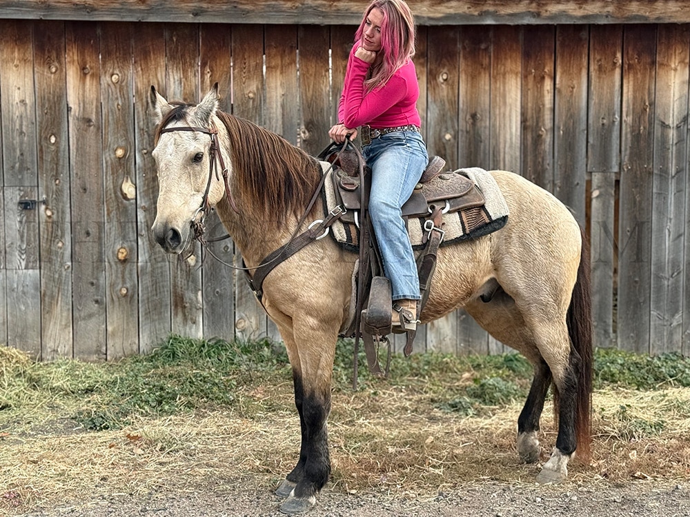 This gelding has done the real work. He’s pushed cattle, checked fence lines, been part of brandings, and logged miles of ranch and trail terrain. He’s had a rope thrown off him, navigated rough country, and been exposed to just about everything imaginable — from loud vehicles and tarps to strollers and dogs. He handles pressure and unpredictability with confidence and a clear mind.