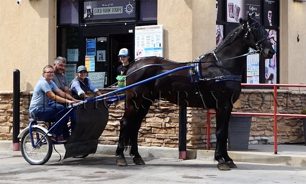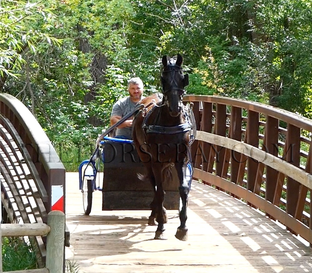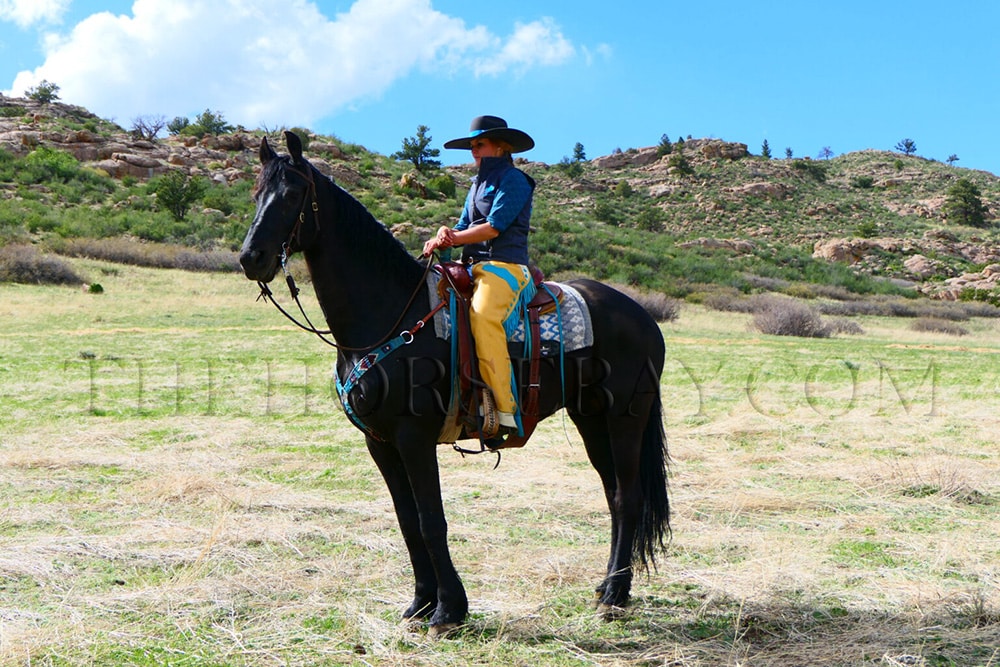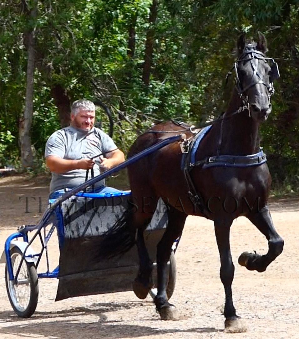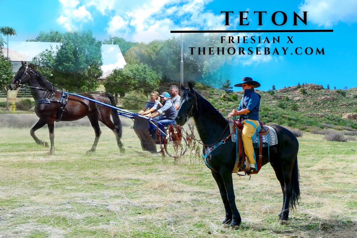 Teton is a stunning Friesian X who rides and drives the best! This big guy is eye-catching, gentle and sweet, and will make an exceptional addition to any family. He has pulled a buggy for an Amish family and is an absolute pro when it comes to going down the road. He is traffic safe, and the wife used him to go to town to get supplies. We have taken him all over in the buggying, including drive-thrus (who were, sadly, out of our favorite cookies!). While we have loved driving him, he has been a phenomenal trail partner for us as well! He has a great mind on the trail taking all things in stride. He has been in town, across creeks and rivers, around bikes and strollers, and is just a super honest and fun horse to both be around and ride. Teton has also been up in the mountains and is sure-footed and careful about his foot placement. He is great to hitch up, friendly and easy to catch anywhere, always the first to greet you and loads/unloads like one should. Teton is no stranger to being hauled around and hauls great as well as being easy to saddle and bridle. This big guy has no spook and is an exceptional dressage prospect as well with his fancy movement. On the trail, he will ride anywhere in the pack from the front to the middle or bringing up the rear. He is great for the vet and farrier and stands like a champ. We can’t wait to see what his future holds with his next partner. Thank you in advance from totonkatrailequine. We look forward to everyone’s calls and meeting you. We will return your call if you leave us a text message. No voicemail! Shipping can be arranged anywhere in the States or internationally. Payment is expected the next business day by noon via wire transfer. Thank you again from totonkatrailequine.