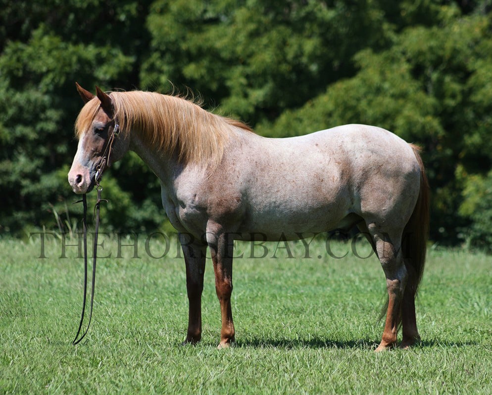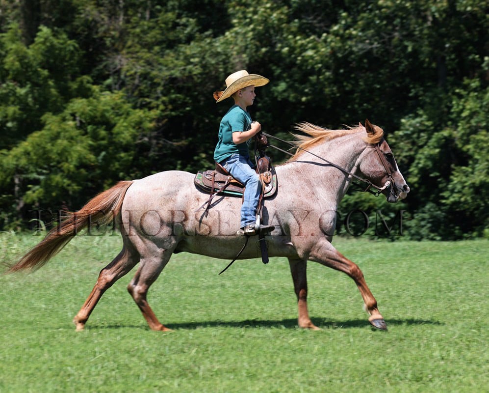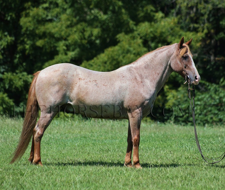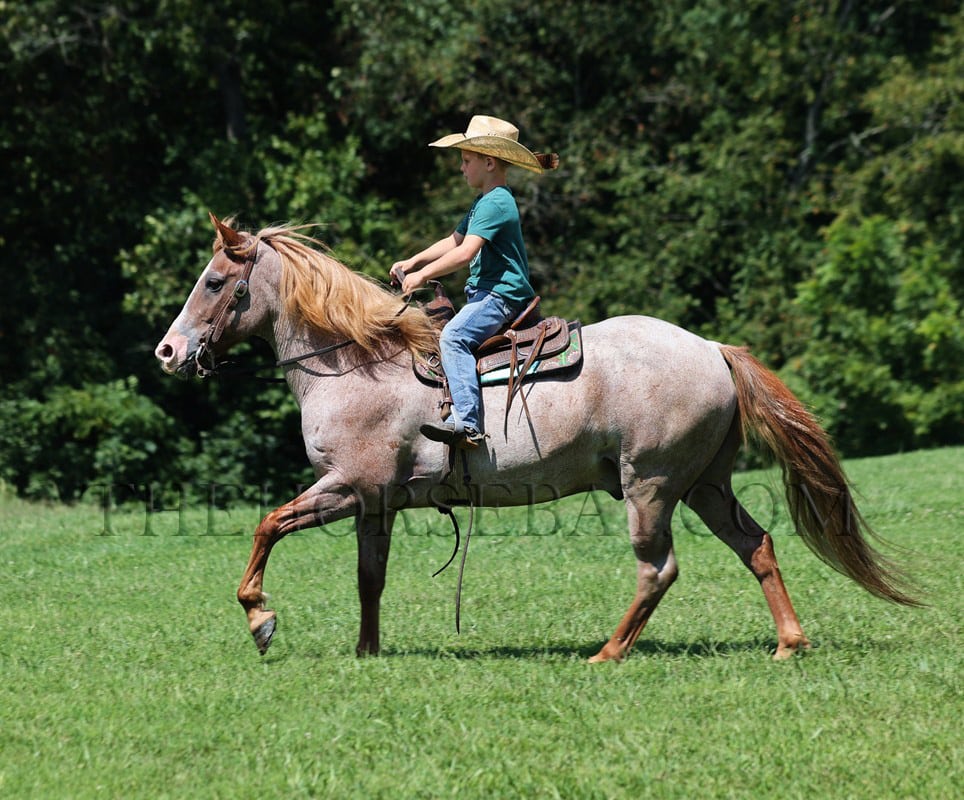 There is no gamble here… Vegas is a sure shot! Take a look at the coolest little quarter horse that you will see! He has it all going for him, from that beautiful red roan color to that pretty mane and tail, that stout muscular build, and don’t forget about that sweet little lope! Vegas is a 14 year old red roan quarter horse gelding that is standing around 13.1hh. All summer long, Vegas has been my 6-year-old son’s horse, and he has trail-ridden him, taken him camping, and ridden him on night rides and on wagon trains. Vegas has been the perfect horse for him, and he has been his best friend! Vegas has done it all on the ranch; he has pasture roped and doctored sick ones, herded cattle, and has been riding down the trails! Vegas has been ridden in multiple states, from New Mexico to Kentucky. He will cross creeks, ditches, and logs and navigate rough rocky areas. He has a nice walk, smooth jog, and a good lope; he also reins around and backs! He has been exposed to all kinds of wildlife, such as deer or turkey, or other animals like cows or dogs, and will go anywhere he is asked to. He has ridden many miles in the mountains of Eastern Kentucky and encountered every obstacle possible on the trail. He will go up or down even the steepest slopes, across deep creeks, over downed trees, and over all types of rough terrain while still being sure-footed. No gambling with this Vegas! Feel free to call Korey Patrick with any questions.