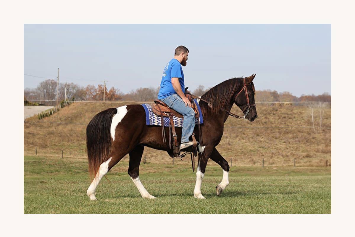 Jacob Glover of Jamestown, KY, owns Jacob’s Stables. I have had horses from a young age and enjoyed trail riding, camping, and the great outdoors on horseback. I’m just a one-man operation, and I don’t have many horses, but I strive for a high-quality horse. Several days during the week, I load up and haul an hour away and ride my horses around national parks so that my horses are used to being hauled and used to new places. I prefer gaited horses the most (TWH, MFT, SSH), although I occasionally have a gypsy vanner or Friesian. I follow many natural horsemanship methods, and I enjoy getting in tune with my horse’s minds so that we are on the same level. Some of my horses will be taught to lay down for mounting or side pass to a mounting block. I do a lot of coon hunting at night and ride my horses, lead dogs off them, and shoot all around them frequently. All of my horses will know what REAL trails are! Creeks, mud, logs, deadfall, slick rocks, and steep inclines are just everyday life for them.
